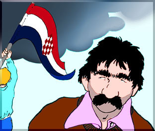 Onako sve udjuture. Lepo se secam, stajali ja i burazer na stand, kad je onaj iz opstinu na Dubravu prvu zastavu izneo. Na kocke: jedno crvèno, jedno belo. A moj burazer, Tarzan mu ime, sve zajebàva na onaj. Pita gi: e, 'a de je ona sa zvezdu?