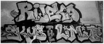 Nakon (skoro) cjelodnevnog lutanja i trazenja nabasale smo i na njih. Skriveni u mraku nekakve veze, iza kontejnera i stepenica, u sam sumrak dana - na zidu stoje oni. Dva velika sarena grafita: "Ajmo Rijeka" i "Sky's The Limit". Kazu, decki su ih crtali cijeli dan. Vidi se.